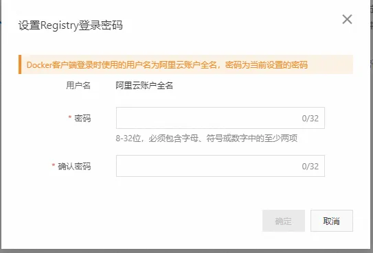 - 如果您使用的是阿里云账号,阿里云账号就是您的镜像仓库登录名。
